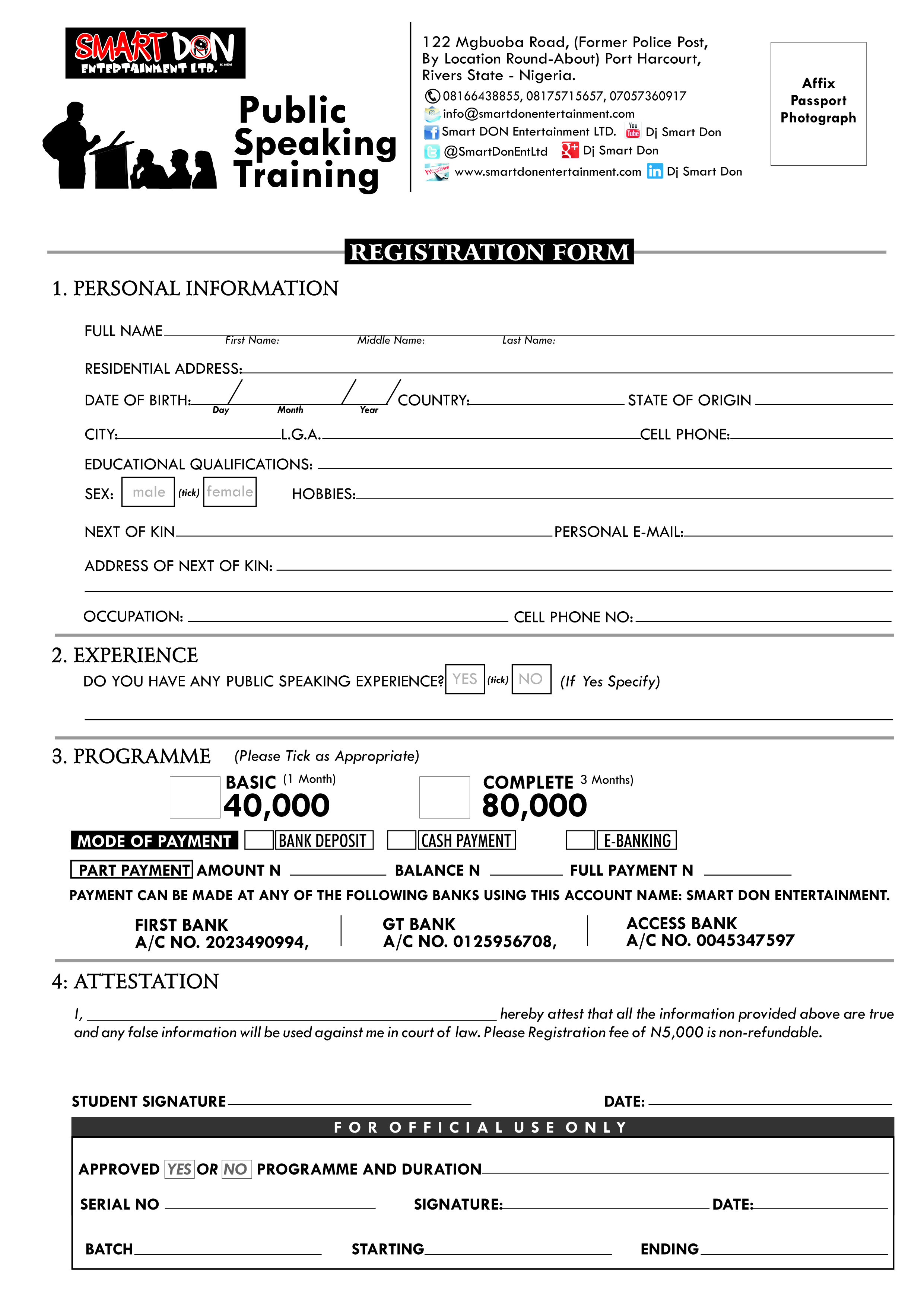 Visit Smart Don Entertainment or Call 08166438855, 07057360917 or Email [email protected] to enquire about training schedules and availability. Enroll now