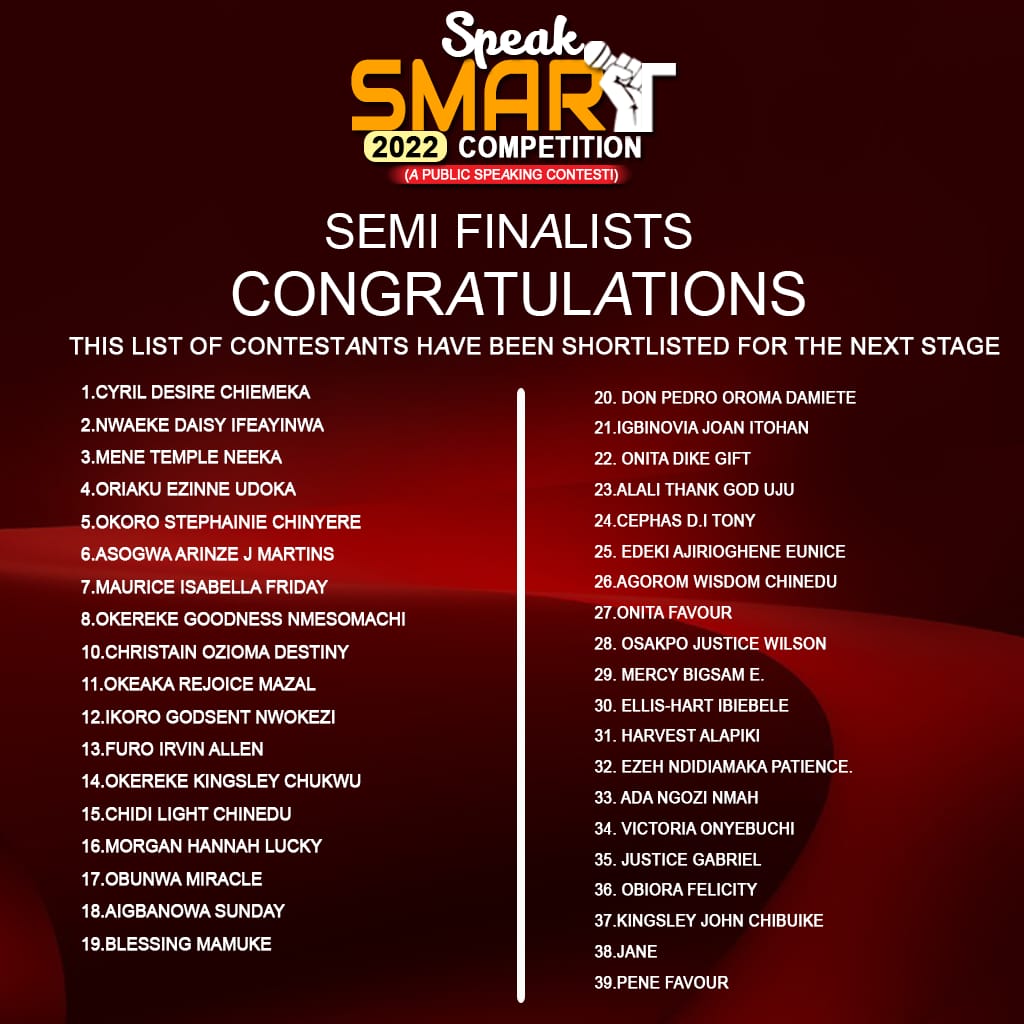 These Contestants just made it to the Semi Finals in the ongoing Speak Smart Public Speaking Competition.