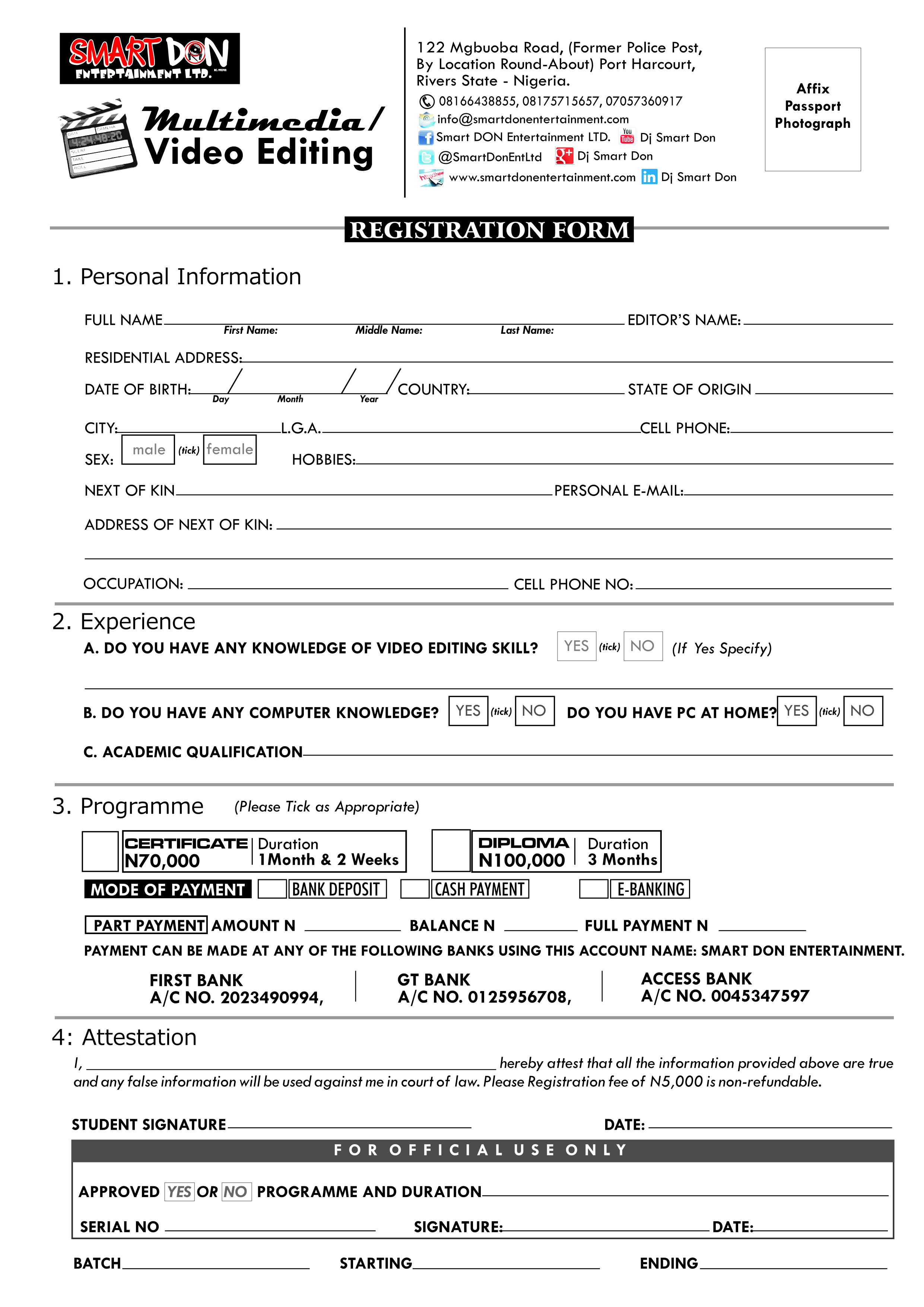 Visit Smart Don Entertainment or Call 08166438855, 07057360917 or Email [email protected] to enquire about training schedules and availability. Enroll now